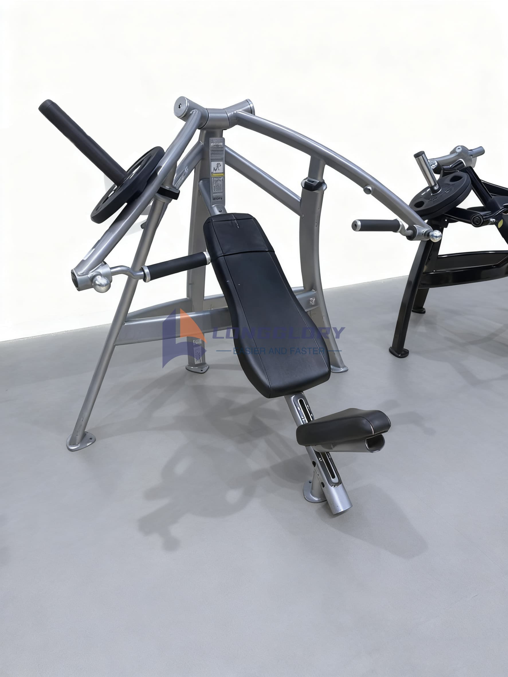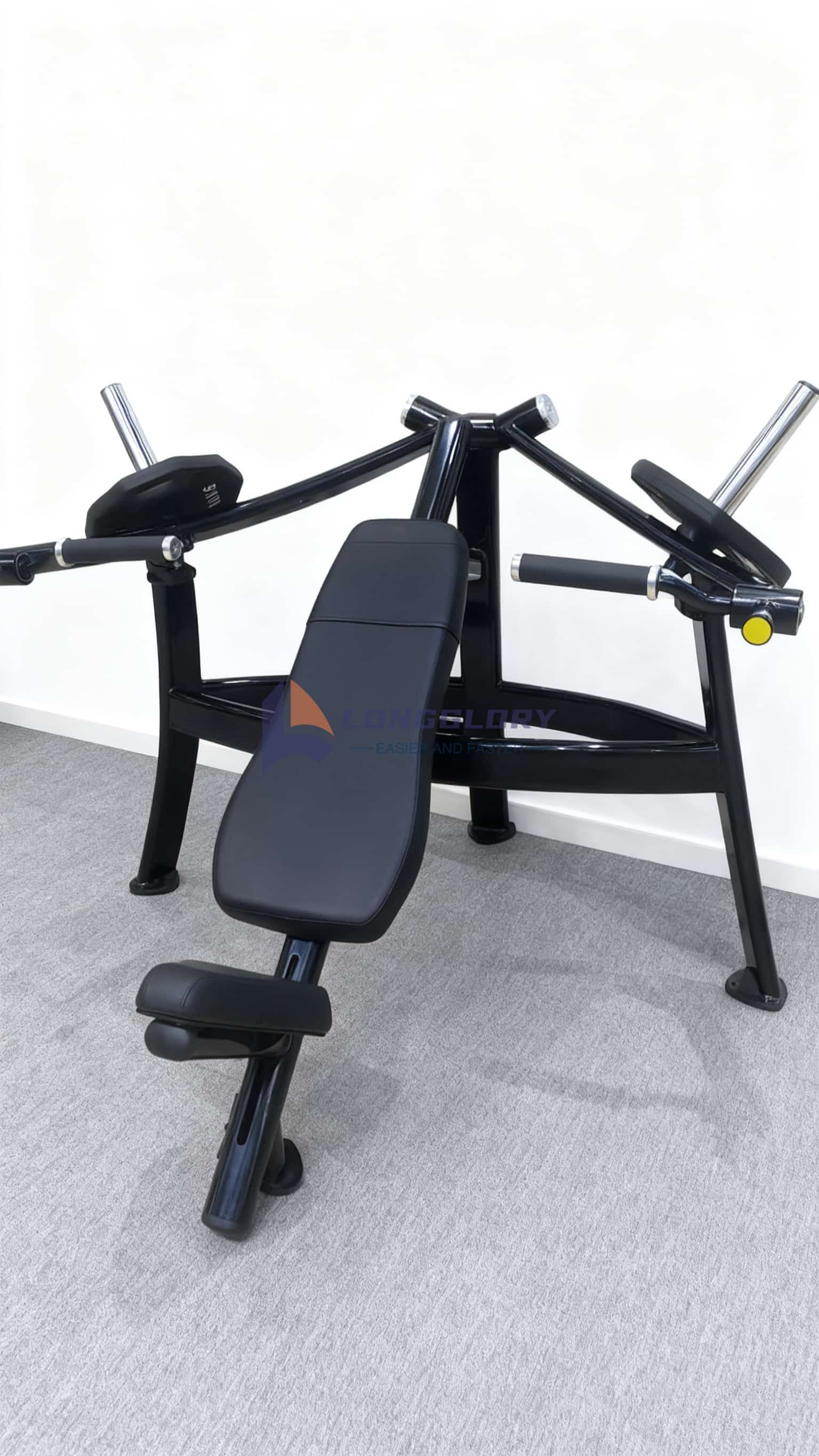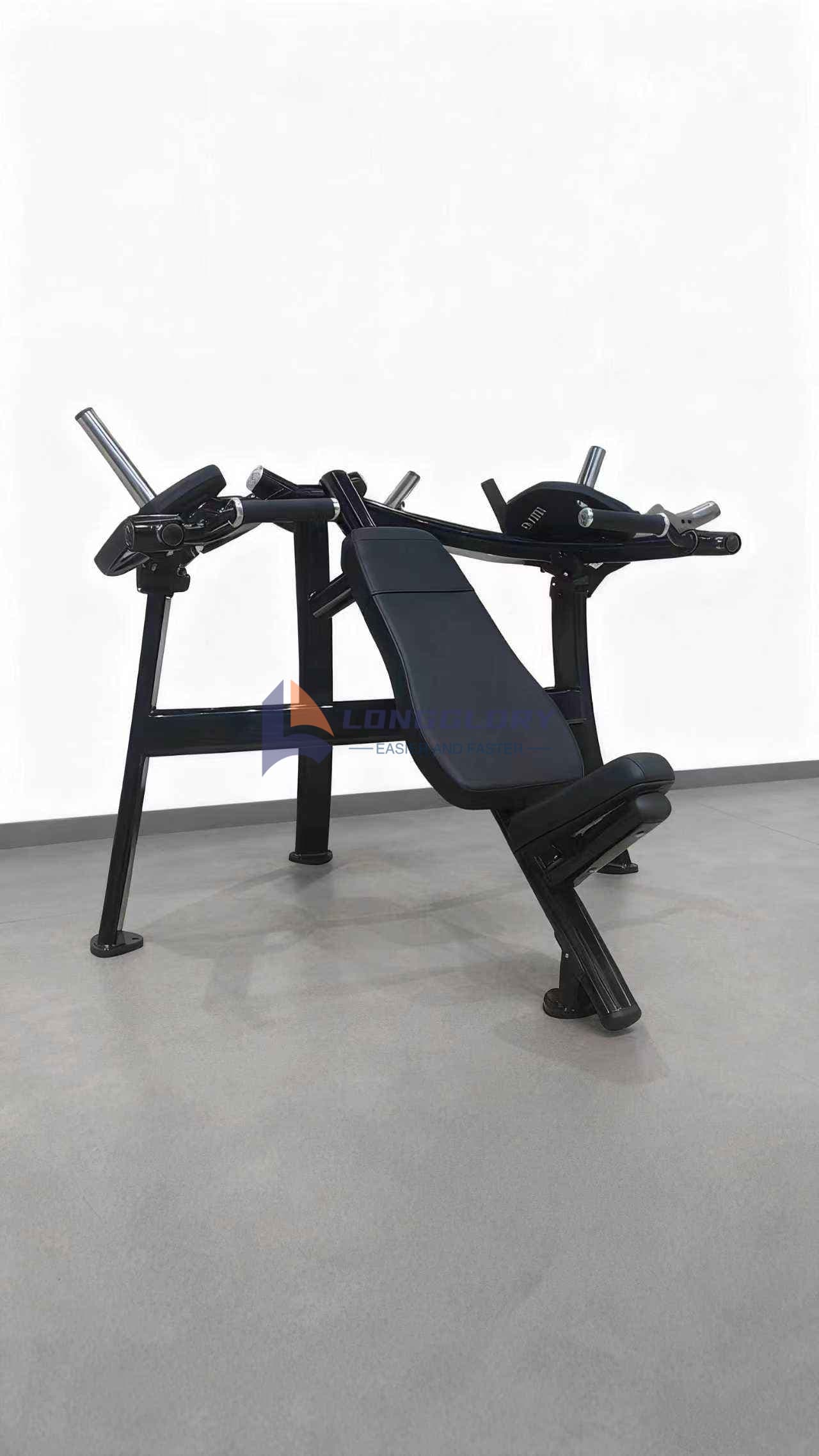 Комерцијална косина преса за груди је направљена од челичног оквира за тешке услове како би се осигурала дуготрајна издржљивост и стабилност при високофреквентној комерцијалној употреби. Његов ергономски угао нагиба помаже да се горње прсне мишиће активирају ефикасније од равних притисака, чинећи Цоммерциал Инцлине Цхест Пресс неопходном машином за тренинг снаге груди у комерцијалним теретанама.