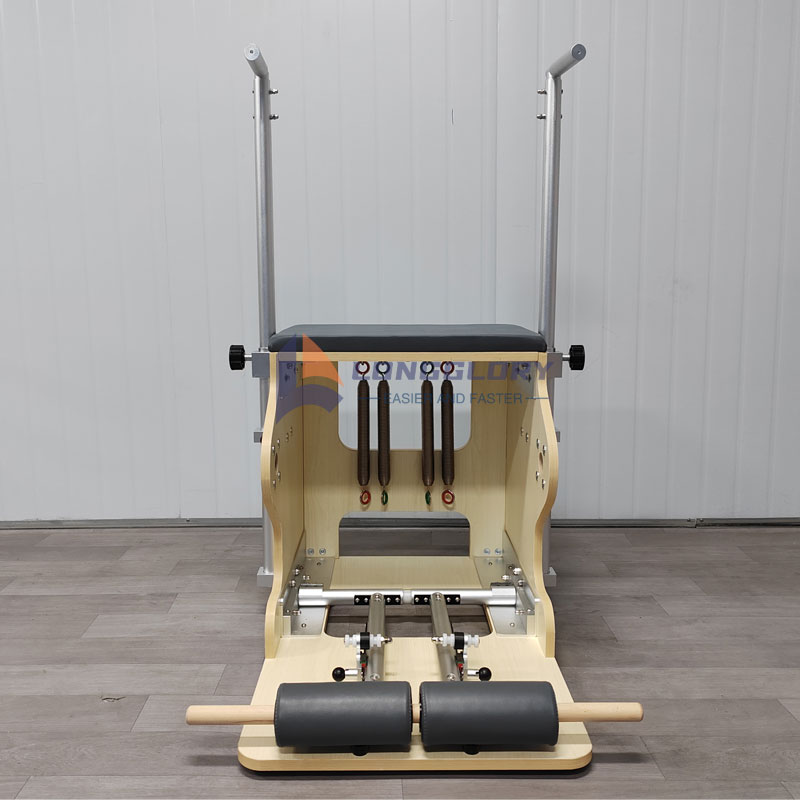 3. Пилатес столица: Суштина дизајна: Интегрише педалу, подесиве опруге, неклизајуће ручке и удобно седиште, са паметним дизајном који балансира између функционалности и преносивости. Фокус тренинга: Наглашава јачање једностране координације удова и динамичке равнотеже, прецизно обликовање линија кукова и ногу и дубоко активирање основних мишића. Предности употребе: Компактан и који штеди простор, посебно погодан за кућна подешавања; флексибилни подесиви отпор прилагођава се различитим фазама тренинга. Класични покрети: Степ-уп пресс (ваздушни јастук) и тренинг равнотеже са једном ногом побољшавају снагу доњих удова и контролу равнотеже.